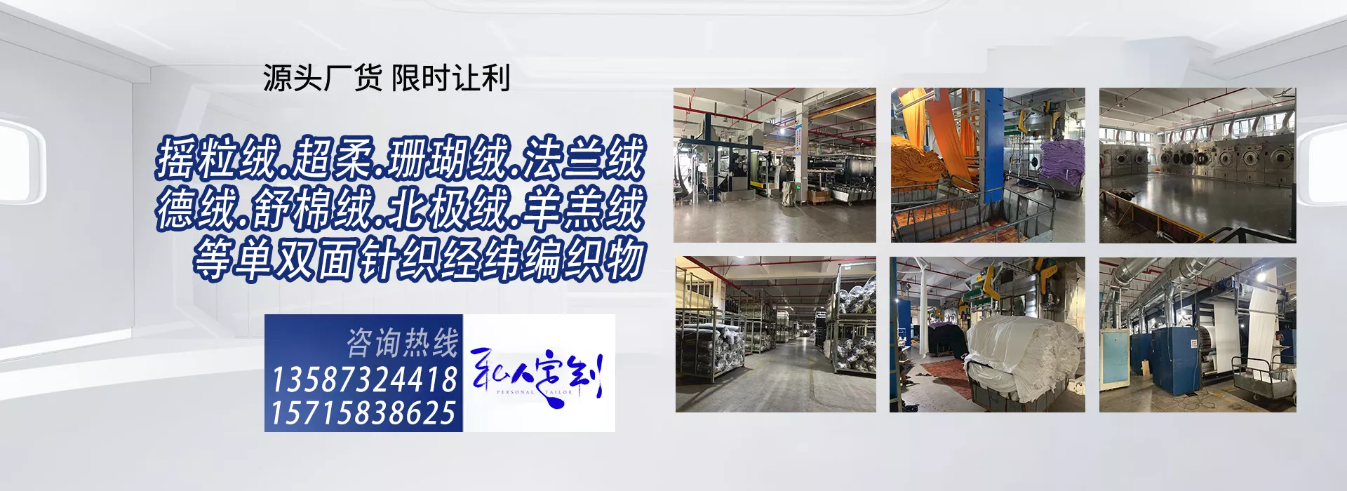 专业生产摇粒绒:单双面绒,抽条绒,阳离子摇粒绒,提花绒,剪毛绒,短纤绒,羊羔绒,粗针单面绒,摇粒绒复合,印花;超柔:银狐绒,奥粒绒,兔毛绒,德绒,宾利绒;舒棉绒:北极绒,棉花绒,不倒绒,法兰绒,珊瑚绒等产品;